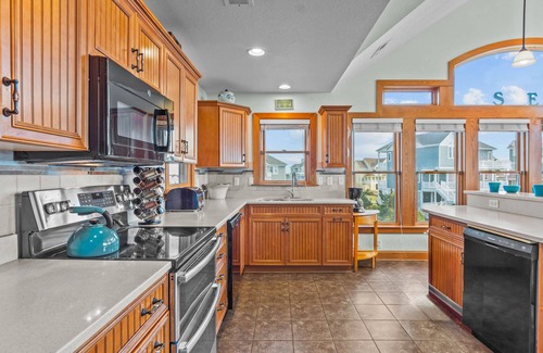 OCEAN SIDE Avon — Ocean Isle Estates — Set your sights on clear horizons when you settle into SEA SMOKE, a beautifully appointed six-bedroom/five-full and one-half bath home just a short walk to the community beach boardwalk and the ocean’s edge. Also close by are Avon’s charming dining spots, a grocery store, and the famous Avon Fishing Pier.