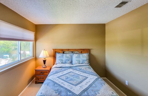 Embrace serenity on the large screened porch, overlooking a picturesque green expanse with enticing glimpses of the pool and river. Morning coffee feels extra soothing, and afternoon naps are more tempting from the comfort of the outdoor dining set or chaise lounge. Set within the scenic embrace of River Bend, surrounded by water on three sides, the community treats you to spectacular views and amenities. These include a 48-slip marina, a refreshing pool, communal grilling stations, and enchanting walking paths. For our boating guests, private access to a boat ramp, dock, and trailer parking adds an exclusive touch to your bombshell getaway.