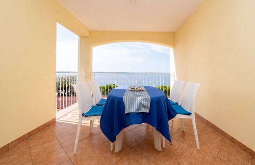Apartment can accommodate 4 guests. Beds are situated in 1 sleeping rooms, but also in the living room, within 35m2. Guests can use a private terrace to enjoy the warm summer evenings. The apartment offers the sea view. Food can be prepared using barbecue which is shared with other guests too. This accommodation unit welcomes pets at an additional charge.