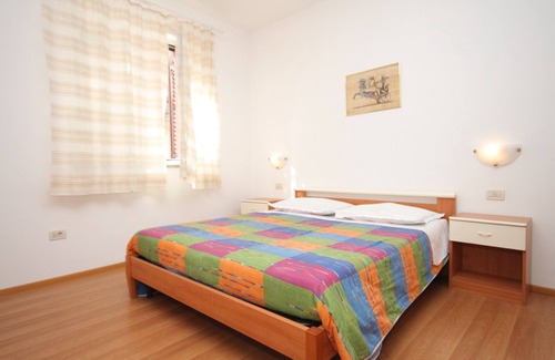Apartment can accommodate 5 guests. Beds are situated in 1 sleeping rooms, but also in the living room, within 45m2. Guests can enjoy a sea view from the private terrace. Food can be prepared using barbecue which is shared with other guests too. This accommodation unit welcomes pets at no additional costs.