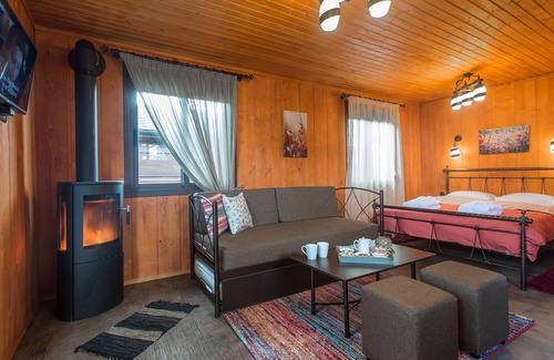 Our One Bedroom Mountain Bungalow is a spacious wooden Bungalow of 35 square meters Consists of one bedroom with a double bed and a living room with a sofa bed. The room can host up to 4 guests.