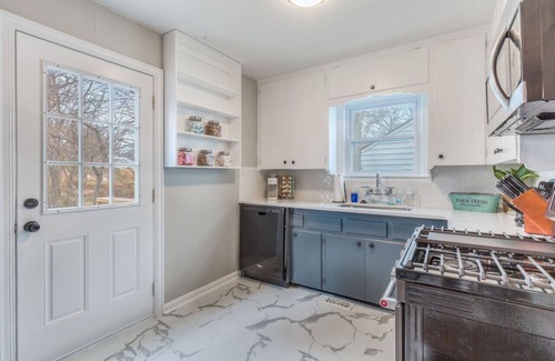 Step inside and enjoy a warm, welcoming home with vintage charm and modern comforts. The living room is perfect for relaxing with a movie or board games, while the kitchen has everything you need for cooking or heating up leftovers from Tulsa’s amazing restaurants.