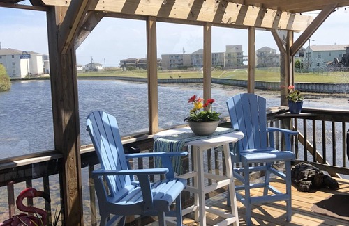 Located at MP 6 3/4, Parrot's Perch is 'between the highways' this SAT-SAT cottage is great for a couple, small family, or groups wanting to keep additional family & friends close by. Our home, although in the tradition of the Old Nags Head style, is totally remodeled & up to date. This property is fresh, clean & modern on the inside... and out Parrot's Perch sits on a quiet pond. It's a great place to sit & relax on the Deck to watch the geese, ducks & turtles.