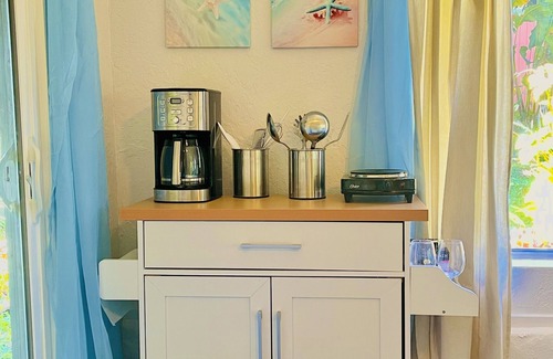 Beautiful, peaceful, garden atmosphere. 5 minute Drive to Kahakai Park with Gorgeous Ovean Vista View. Ideal for singles or couples. However we have two single air mattresses and extra bedding available for up to two children. Queen Size Bed and 32” TV FREE Netflix and HBOMax and Premium Channels. Desk work space area. Portable Crib and High Chair, available upon request. French Doors open to private Outdoor lanai sitting area with a Gas BBQ Grill with side burner and outdoor sink. Boogie Boards, Beach Towels, 2 sets of snorkels and flippers, small cooler and beach toys all included. Plenty of fresh fruit on property, available to guests, to pick as they like (depending on season) Coconuts, Passionfruit, Oranges, Lemons, Pineapples, Avocados. Located about 30 minutes drive from Hilo airport.