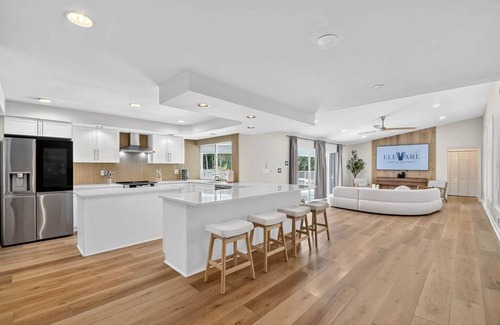 Palm Beach style meets comfort in this 5BR/3BA Wellington escape, 5 min to Polo Club, 20 min to beaches and Downtown West Palm, 15 min to PBI. Airy Scandinavian design, bright social spaces, and a lush private yard perfect for group stays. Private pool, large backyard, outdoor dining Lotus Lounge spa/glam room/Luxury showers Game room with pool table and shuffleboard Sleeps 14 - ideal for large families Self Check in, Fast Wi-Fi and workspaces See photos, bed layout, and all amenities. Welcome to your private Palm Beach luxury retreat — a 3,410 sq. ft single-story estate on a sprawling one-acre gated lot in prestigious Wellington. Just minutes from world-class polo grounds, beaches, and the vibrant energy of Downtown West Palm, this million-dollar home offers the perfect blend of modern elegance, resort-style amenities, and total privacy. Step inside and you’re greeted with a warm Scandinavian–Japandi design, where organic textures meet sleek lines. Sunlight fills the open living spaces, highlighting bespoke furnishings and high-end finishes throughout. Every detail — from the rain showers in each bathroom to the chef’s kitchen outfitted with brand-new smart appliances — is designed to exceed expectations for the most discerning guests. Unwind in the spacious living room on designer seating while streaming your favorite shows on the massive 85" smart TV. Host memorable dinners at the 10-seat dining table, or enjoy casual gatherings at the 8-seat kitchen island. The fully stocked gourmet kitchen features premium appliances, including a Ninja Luxe Cafe espresso machine, dual ovens with built-in air fryers, and every essential for elevated cooking. Retreat to one of five beautifully styled bedrooms, each with blackout curtains, a 65" smart TV, and plush goose down bedding. The bathrooms are a true highlight, with double vanities, Delta luxury fixtures, and rainfall showers that create a spa-like experience in the privacy of your own suite. For indulgence and pampering, step into the Lotus Lounge — a serene spa/glam space equipped with professional massage tables and relaxing beds, perfect for self-care days and getting ready in style. Entertainment flows into the dedicated game room, complete with a professional pool table, shuffleboard, and a curated selection of board games for all ages. Outside, the expansive gated backyard is anchored by a sparkling L-shaped pool, surrounded by chic loungers and umbrellas for shade. An adjacent outdoor dining space and pass-through window from the kitchen make al fresco meals a breeze. And when it’s time to balance work and play, enjoy seamless connectivity with ultra-fast 500 Mbps Wi-Fi, multiple desk setups, and keyless entry for convenience. Highlights: 3,410 sq. ft. single-story estate on a one-acre gated lot Prime location: 5 min to Polo Club, 20 min to beaches & Downtown West Palm, 15 min to PBI Scandinavian–Japandi design with organic textures & upscale finishes Spacious living room with 85" smart TV Dining for 10 + kitchen island seating for 8 Fully stocked kitchen with Ninja Luxe Cafe espresso machine & dual ovens w/ air fryer feature 5 bedrooms: 1 King, 2 Queen, 4 Queen bunk beds — each with 65" smart TV, blackout curtains, closet, iron & ironing board Bathrooms with dual sinks, Delta luxury fixtures & rainfall showers Lotus Lounge spa/glam room with massage tables & facial beds Game room with pool table, shuffleboard & board games L-shaped private pool with loungers & umbrellas Outdoor dining area & kitchen pass-through window 500 Mbps Wi-Fi, smart thermostats, keyless entry Laundry with detergent provided Quiet hours: 10 p.m. – 7 a.m. | No events or parties Guests will have exclusive access to the entire home, pool, and one-acre gated property for the duration of their stay. From the moment you arrive, the keyless entry system allows for a smooth self check-in, ensuring your vacation begins effortlessly. Included with your stay: Entire 3,410 sq. ft. single-story home Private L-shaped pool with loungers & umbrellas Expansive gated backyard for complete privacy Full access to the Lotus Lounge spa/glam room Fully equipped game room with pool table, shuffleboard & board games Spacious living room with 85" smart TV Gourmet kitchen with all cookware, dinnerware & premium appliances Dining table for 10 & kitchen island seating for 8 5 bedrooms, each with 65" smart TV, blackout curtains, closet, iron & ironing board All bathrooms with dual sinks, Delta luxury fixtures & rainfall showers Ultra-fast 500 Mbps Wi-Fi & multiple desk setups for remote work In-home laundry with detergent provided Large driveway parking for up to 8 vehicles Smart thermostats for climate control Outdoor dining area with pass-through kitchen window We respect your privacy while ensuring you have the support you need for a seamless stay. The home is equipped with a keyless entry system, allowing for self check-in anytime after 4:00 p.m. and self check-out by 11:00 a.m. During your stay, you’ll have the entire property to yourselves. I am available via Airbnb messaging, phone, or text for any questions, recommendations, or assistance you may need. While I will not be on-site unless requested or required, I can respond quickly to ensure any issue is addressed promptly. You can expect: Hassle-free self check-in & check-out Fast responses via Airbnb, call, or text Complete privacy unless assistance is requested ★ ADDITIONAL ACCOMMODATION ★ Traveling with a larger group or your preferred dates aren’t available? We manage other high-end properties in the area, designed with the same attention to detail and luxury as this Wellington retreat. Browse our host profile to explore the complete list of stunning homes. ★ CLEANING & SANITIZATION ★ Your health, safety, and comfort are our top priorities. Our professional cleaning team follows a meticulous, multi-step process after each check-out, including sanitizing all high-touch surfaces, laundering all li