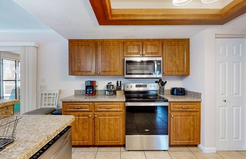 The house comes complete with a private enclosed pool, with a pool heater and cooler for added comfort. Take a dip and relax in the warm sunshine afterward in the outdoor seating area, complete with lounge and pool chairs. You can also enjoy some delicious barbecues on the patio, utilizing the provided gas grill. Inside, ample soft seating, a full kitchen, a large dining table and a credenza, and comfortable bedrooms (two of which offer TVs for evening entertainment) are prepared to make everyone feel right at home. Utilize the private washer/dryer when your swimsuits need refreshing. And sit in the sunroom when you need a break from the sun's rays but still want to soak in its light.
