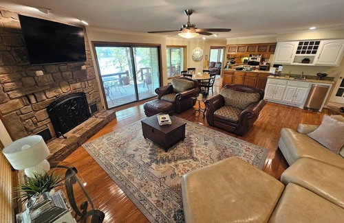 We are located in the beautiful gated community of Hot Springs Village in Arkansas. Hot Springs Village is 26,000 acres of lakes, golf courses, planned hiking and biking trails, and gorgeous mountain scenery. Just an hour from Little Rock, this beautifully decorated home sits on a private spring-fed lake. You will not want to leave the house, but if you do decide to venture out there are plenty of restaurants, trails, and amenities. Just 30 minutes down the road is historic Hot Springs, AR.
