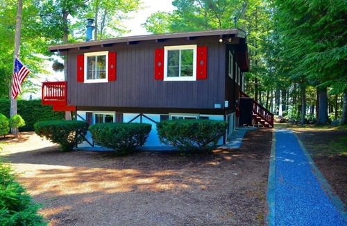 Prepare for an amazing vacation at this 4 bedroom Chalet located in Patrician Shores on Lake Winnipesaukee with water views through the woods. The new owners have lovingly renovated this lovely home and it is absolutely adorable. Step out the door onto the wrap-around deck and gaze through the trees to the lake. Like to take a dip on a hot day? Meander down the path in the woods to the Leavitt Park Town beach on Lake Winnipesaukee or stroll down the street to the private Patrician Shores beach – you’ll have your pick of beaches!! When you’re ready to head back to the house, the outdoor heated shower is perfect for rinsing off the sand and sunscreen. Enjoy your meals at the two picnic tables on the deck while breathing in the fresh air and majestic view of the lake through the woods. The brand new Weber grill is just waiting for you to prepare some delicious meals. In the evening, unplug and reconnect around a cheery campfire while enjoying your nightly s'mores - remember, calories don't count on vacation! Inside the house, there are 4 bedrooms with brand new Saatva classic luxury firm beds and 2 newly renovated bathrooms. The high ceilings and open concept of the living area makes for a nice, open space for the family to gather. If you’d like some quiet time, head downstairs to the cozy TV room to curl up with a book or a good movie. Split A/C units in the living area and lower level TV room plus fans in all other rooms. All this and less than a 5 minute drive from either the Town of Meredith or the Town of Center Harbor!!