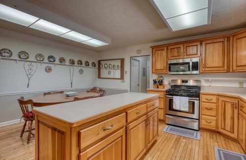 Burnett Cottage features a fully stocked kitchen, allowing you to prepare your favorite meals with ease. The propane grill on the covered deck allows for delicious barbecues while taking in the stunning surroundings, such as the valley in full bloom in spring or in an array of colors in fall. After a day of exploring, unwind in the inviting hot tub and let the tranquility of the mountains wash over you.