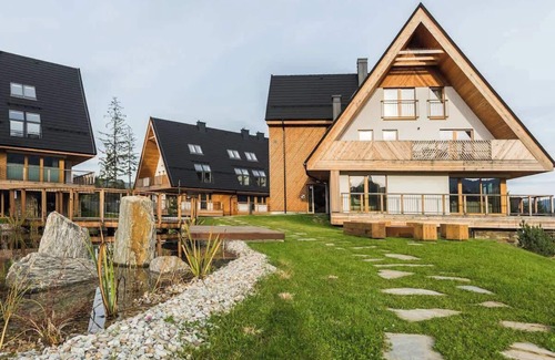 Relax in a comfortable apartment in a green mountain enclave with a view of Giewont, located right next to the Tatra National Park. We offer our guests a space that combines the Podhale tradition with modernity. Here, you will find an outdoor relaxation area, a children's playground, and water ponds that create a charming atmosphere.