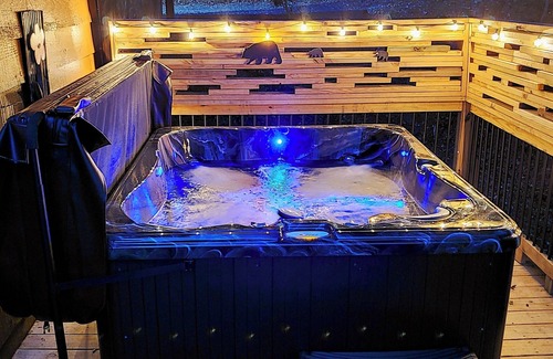 This adorable cabin is ready to host your romantic getaway or a place for time away from the hustle and bustle of your busy life. This cabin is high on a ridge with beautiful views, three outdoor decks, and a gas grill. Sit outside and enjoy the views or star gazing in the hot tub at night. This one-bedroom cabin can sleep two adults and two kids. We provide a very comfortable king-size bed and bunk beds for the kids in a separate space. The living room has an extra gas space heater for those cool mornings.