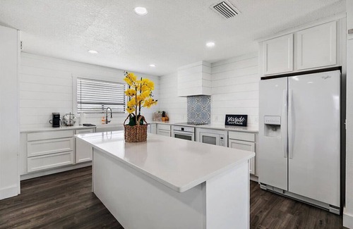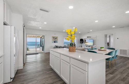It's the perfect time to present “Pearl of the Sea”. This 3 bedroom, 2 bath home was completely remodeled on the inside during the Spring of 2021. The updates include all new flooring, ceilings, the addition of a full master bathroom, brand new kitchen, and more. The new floor plan creates an open space which incorporates the kitchen, dining, and living areas. This allows your group the enjoy each others’ company even while cooking, watching your favorite shows, or just relaxing.