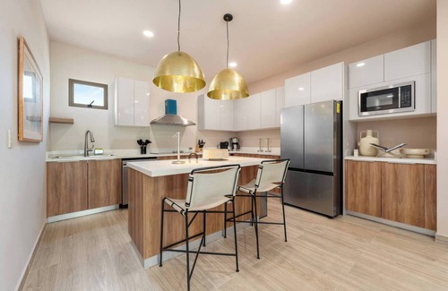 Ground-floor 5-bedroom condo at Las Arenas with the best terrace and direct access to pool and amenities. Inspired by Los Cabos style, surrounded by desert vegetation. Premium décor, 7 beds, 5 baths, sleeps 12. Community features pool, jacuzzi, firepit, gym, massage room, and breathtaking sunsets. Only 500m from Medano Beach access through RIU Hotel and close to downtown. Perfect mix of luxury, comfort, and vibrant vibes.