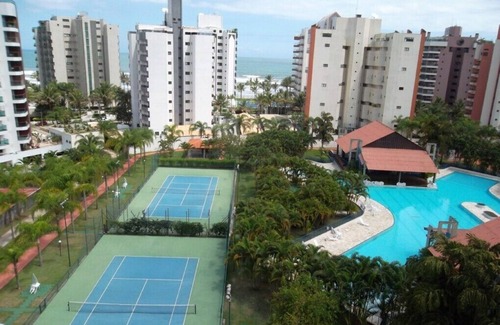 Duplex penthouse in the Indian - Ocean Park building, with 150 square meters, 3 bedrooms, 1 suite, 3 bathrooms, equipped kitchen, large terrace with barbecue, balcony in all rooms and cozy rooms. Air conditioning in all environments. Comfortably accommodates 10 people. Close to Riviera Shopping and 100 meters from the beach (beach service included). 2 covered parking spaces. Leisure area of 19,000 square meters, containing the largest swimming pool in the Riviera, 2 official tennis courts, 1 multi-sports court, 1 beach soccer court, 2 kiosks with 3 barbecue grills each, playground, dry and steamed sweats, gym , games room and wifi available throughout the building.