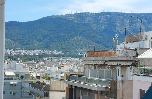 105 sqm fully renovated apartment (penthouse) located on the 5th floor in a quiet street. When you enter the beautifully decorated living room, you will immediately feel the welcoming atmosphere of the space. Furnished with traditional Bavarian furniture chosen with lots of love, it offers the ideal place to relax and watch a movie on TV. The large sofa can sleep a fifth person if needed. Next to the living room, you will find a fully equipped kitchen with modern appliances, refrigerator, oven and coffee machine. The kitchen is equipped with the most important cooking utensils, dishes and cutlery, so you can easily prepare your favorite meals. The apartment has two stylish bedrooms, both equipped with comfortable beds and linens. With plenty of storage space, you can easily settle in during your stay. There are two modern bathrooms, one of which is equipped with a walk-in shower, giving you a relaxing space to unwind with a relaxing bath. For your comfort, clean towels and complimentary toiletries such as shampoo are provided. Solar water heater. It has 1 large terrace balcony with views of Hymettos, Lycabettus and Mount Aegaleo