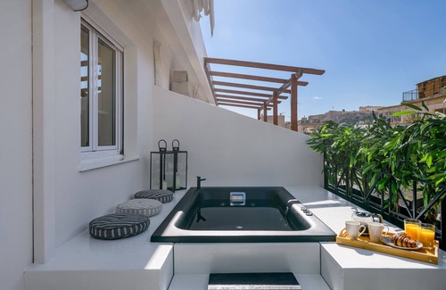 Our apartment is fully renovated and fully equipped to offer you the best experience while visiting Athens. It's located on the 5th floor at a quiet pedestrians street, approximately 5 mins away from Syntagma square and 5 mins from Monastiraki square! From your balcony and the balcony hot tub you can enjoy the Acropolis and Parthenon View while being close to the best bars and restaurants of the city.