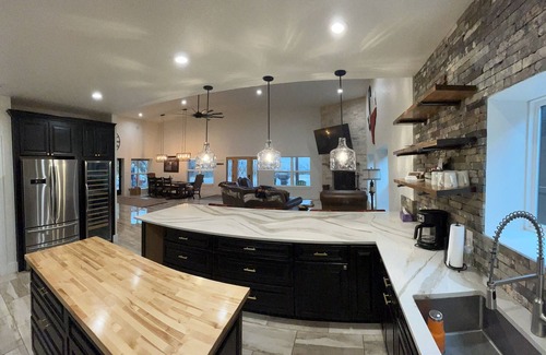 Rocking S Lodge is amazing two story home , set on spacious acreage with Texas longhorns . This property is private and secluded, but only 15 from Main Street in Fredericksburg and 10 minutes from the wineries on 290. We have an amazing pool and large hot tub on the fully covered back porch. The bedrooms are beautiful and each have a private bathroom. A full custom kitchen has everything you need.