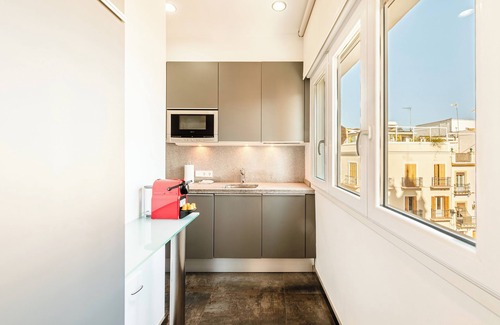 The bathroom combines style and functionality, with a spacious shower, high-quality toiletries and soft towels that add a touch of luxury. In addition, the apartment has free Wi-Fi and air conditioning, guaranteeing a comfortable stay at any time of the year.