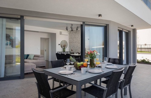This vacation home is part of a beautiful semi-detached house with pool and will delight you with its interior and beautiful outdoor areas.