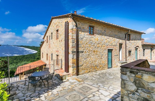 "Petrarca", 3-room apartment 70 m2, on the ground floor. Object suitable for 4 adults. Fully renovated in 2005, rustic and cosy furnishings: living/dining room with dining table and satellite TV. 1 double bedroom. 1 room with 2 beds. Open kitchen (4 hot plates, dishwasher, microwave, electric coffee machine). Shower/bidet/WC. Gas heating, air-conditioning. Natural stone floors. Patio. Terrace furniture, barbecue, deck chairs. Very beautiful panoramic view of the countryside and Chianti. Facilities: safe, children's high chair, baby cot for up to 2 year olds. Internet (WiFi, free). Parking space n 1 (roofed). Please note: suitable for families. Non-smokers only. Maximum 1 pet/ dog allowed. Private entrance. No mandatory extra charges to be paid on-site except for local tax. Bedlinen, towels, final cleaning and all energy costs are included. IT048054B5EBVWGG6K