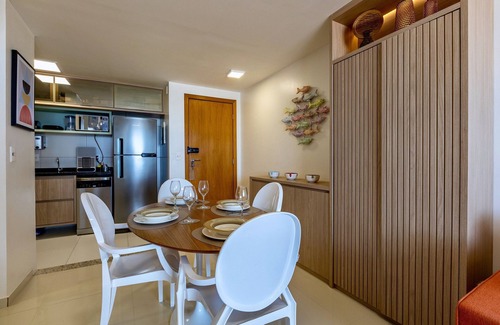 Great seafront apartment, located in the Ilha do Maiorca Residential Condominium, in Praia do Flamengo! It has excellent infrastructure, an adult and children's pool and a gourmet area decorated with furniture.