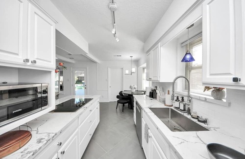 Relax in this newly remodeled 4BR/2BA home with a private pool, stylish open layout, fully equipped kitchen. Located in Southwest Houston, just 3 minutes to Hwy 59, Memorial Hermann Hospital & Houston Christian University, 5 mins to Bellaire Asian Town, 10 mins to Galleria Mall, 15 mins to NRG Stadium & Texas Medical Center, and 5 mins to shopping center. This is the perfect house for all families groups, or business travelers looking for comfort, relax and convenience!