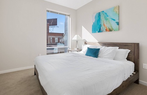 You will have access to a spacious two-bedroom condo and private bathroom during your stay. Whether you are in town for a quick trip or extended stay, this condo has everything you need. In the open concept living space you will find a comfortable couch and tall windows, making it the perfect spot to relax and stream your favorite shows. The fully operational kitchen features a dishwasher, full-sized refrigerator, and moveable island. Off the main space are two sleek, cozy bedrooms and modern bathroom featuring a large shower with a removable handheld shower head. Start your morning off right with a hot cup of coffee from the Keurig and a workout in the 24/7 fitness center. Spend your day at the pool or hot tub. Need a safe spot for your vehicle? No worries, we have you covered! One free parking space is provided in the attached parking garage.