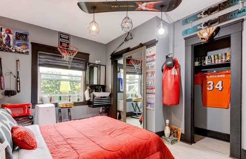 That's right! Basketball hoop next to your bed, toolbox as your vanity, keg barrel as your side table, gas pump as your toilet paper holder, golf club as your towel rack.