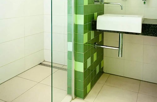 55 square metre private luxury apartment. Contemporary design. Colour scheme: tea leaf green.