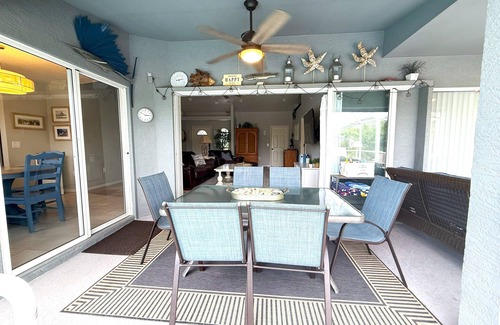 Outdoors, the heated ($100/week) and screened pool is perfect for relaxation and family fun. Guests can BBQ and dine under the covered lanai. The home's location is ideal for golf enthusiasts and beachgoers. State parks offer hiking, birdwatching, and picnicking, while nearby trails cater to fitness lovers. Local dining varies from casual to fine dining, and boating and fishing trips can easily be found close by.