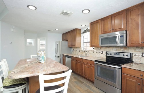 Whether it's work or play that brings you to Humble, you'll feel right at home at this well-appointed vacation rental! Conveniently located within 10 miles of medical centers and just 15 miles away from downtown Houston, this 8-bedroom, 3.5-bathroom house is an excellent choice for your stay in the Lone Star State. After a day exploring, return for a delicious BBQ in the backyard and s'mores around the fire!