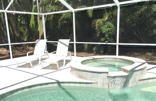 We are located in a quiet residential neighborhood in Naples Florida, minutes from the beach. Our home has a beautiful pool and hottub in a large lanai, with comfortable outdoor furniture.