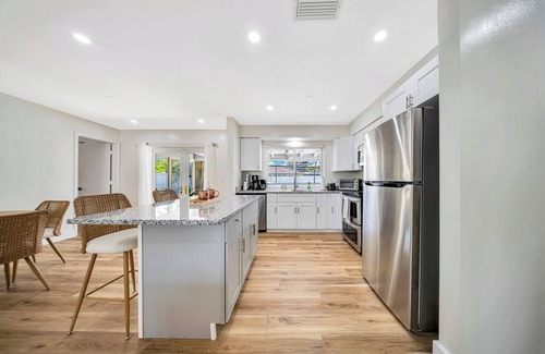 This memorable house is the perfect home base for your trip to Cape Coral. With 3 cozy bedrooms including a king bed, queen bed, bunk bed, and twin bed, this adorable property is perfect for families or groups of friends. The 2 bathrooms are equipped with all the essentials like a hairdryer and shower. Kickback, relax, and enjoy everything Cape Coral and our house has to offer.