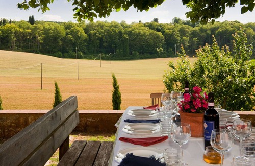 Upon arrival at Villa Le Caggia you’ll find a beautiful clean well-maintained property with views of the hills ideal for a peaceful vacation in Tuscany. For your pleasure you will find a private pool where you can relax while enjoying a nice cold beverage after a busy day of sightseeing. Outdoors you will also find a playground, hot tub, patio and barbecue grill. Sharing a meal with friends and family is a big part of the Tuscan culture. Take advantage of the kitchen to prepare meals using local produce while on your vacation. The kitchen includes coffee machine, microwave, toaster, stove and refrigerator, as well as, plenty of tableware and cutlery for up to 16 people. Dine 'al fresco' like a real Tuscan, the fully furnished veranda is the perfect setting to enjoy food, family and the beautiful Tuscan weather.