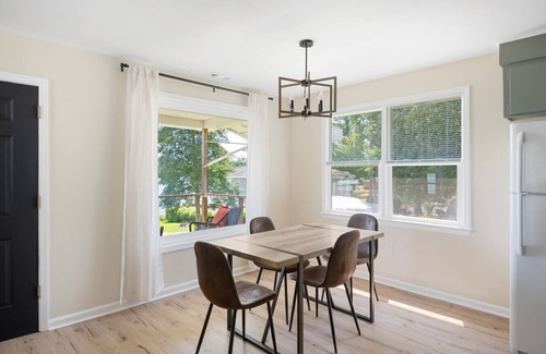 This home includes a dock, full kitchen, 2 porches, propane grill, 2 kayaks, 2 SUPs, life jackets, arcade (featuring pac man) ping pong table, and more! Come visit and enjoy a relaxing getaway!