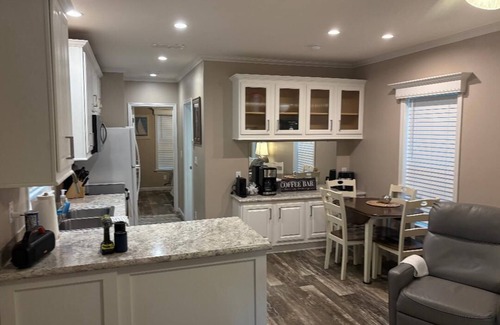 This delightful cottage tucked away in Sun Retreats Crystal River RV park is perfect for your escape. With a cozy bedroom and a charming living room featuring a sofa bed, guests can relax in style. The modern property offers heating, AC, full kitchen with all the utensils, cable tv, wifi, shower with seat and all linens.Nestled in a peaceful setting, this retreat is the ideal spot for a tranquil getaway. RV park has a heated pool, playground, basketball, shuffleboard, dog park that you will have full access to. Golf cart rentals available. It's easy to see why you'll be able to unwind at our place.