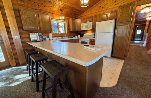 Discover this spacious 2-bedroom, 1.5-bath - ranch style log home featuring an open-concept living area. Enjoy modern amenities such as a cozy sofa sleeper - Smart TVs in the great room and bedrooms, quality Wifi, central air, and a washer/dryer on the main level. The property boasts a large yard, a blacktop road and driveway, and a 3-seasons room on a large deck—perfect for grilling and relaxing. Covered parking in a 2-car attached garage with automatic openers - Enjoy!