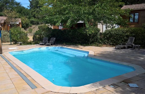 Our mazets, built to accommodate 6 people, are recommended for 4 people to respect the peace and quiet of each. We created our gite village a few years ago, that we propose to the week or for the weekend to families, hikers, or groups of holidaymakers (up to 30 people), wishing to relax in a place nice, different from classic holiday accommodations. Located on a hillside surrounded by pines, olive trees and lavender, our 5 fully equipped cottages welcome you all year round. You can enjoy a personal and intimate space, each cottage is arranged independently. Designed and built on site with French wood, they are perfectly insulated (double glazing, double insulation of walls and ceiling, traditional roof with terracotta tiles), for optimal comfort. The site is equipped with a fenced pool with wide beaches, a mini paddling pool for toddlers, a bowling green, a playground for children, swings ... Composition of the cottage: - 1 kitchen equipped with large refrigerator and a dishwasher - 1 dining room solid wood - 1 sitting area with sofa and LCD TV with TNT, - 1 bathroom with WC Sleeping: - 1 bedroom with 1 large bed + large closet and chest of drawers, two bedside tables - 1 bedroom with 1 bunk bed, sleeps 2 with storage space - 1 sofa bed 2 independent quality beds Outside: - covered terrace with garden furniture, - private electric plancha - bicycle storage privative - parking space per gîte self-service washing machine in technical room Location: A small country road can reach the village by bike or on foot, with access to all local shops: grocery store, bakeries, butchers, restaurant, tobacco / newsagent, pharmacy, doctor, dentist, bars, hairdresser, beauty parlor. Large water park at 3 kilometers for the pleasure of young and old ... Very good restaurant with panoramic views 300 meters from the site. Nearby: vineyards, producers of organic olive oil, organic fruit & vegetable merchants and local produce, natural sites preserved NATURA 2000 (rivers, forests), many sports activities (horseback riding, climbing, hiking, cycling, ...) and cultural.