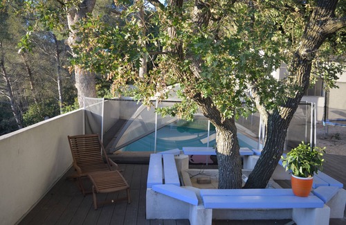 Located in the hearth of the Tallagard forest and at only 2.5 km (3 min by car) of the Salon downtown, this 140m2 house equipped with a securized pool and a large terrace will bring you calm thanks to its beautiful sight on the " Cuech Valley ".