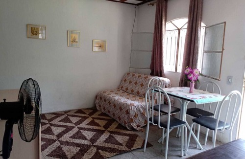 Quitinete,mobiliada com utensílios básicos .Local arejado aconchegante,onibus na porta vasto comércio local e proximo a lagoa.Cozinha americana com sala e banheiro.Contem 1 soda cama 1 sofa 1 colchonete ,ventilador .