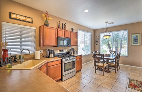 Book a family vacation at this Peoria home, fully stocked with amenities such as the outdoor pool and patio, and convenient to Arizona’s top city attractions!