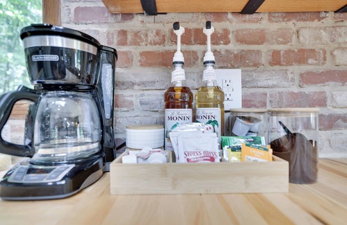 Primary Suite: Queen bed, luxury linens, in-room coffee station