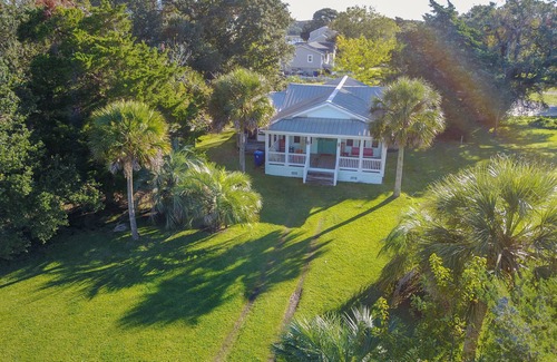 Inside the cottage, WOW! There are vaulted ceilings, beachy colors, lots of windows, shiplap, restored original heart pine floors in living room and kitchen, and heritage plank flooring in the bedrooms. Ceiling fans in every room and on the front and side porches. Dining room table seats 6. Great collection of puzzles, games, books, and DVD library. Large comfy sofa for the whole family to relax. Internet access; TV with Roku in living room and TV with Chromecast in master bedroom.