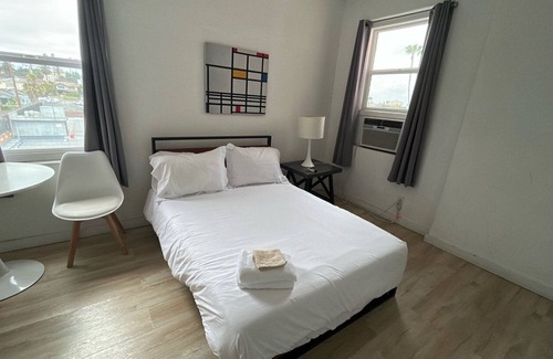 This thoughtfully furnished studio is a great spot for couples or solo travelers visiting LA. With a comfy queen bed, reliable WiFi, and air conditioning, you’ll have everything you need to unwind after a day in the city. Self check-in makes arrival a breeze, and the space is set up for a smooth, hassle-free stay. Whether you’re here for sightseeing, a quick business trip, or just to soak up some SoCal sun, you’ll appreciate the convenient location and the cozy, modern vibe. Clean, simple, and welcoming—this is your perfect little retreat in the heart of LA.