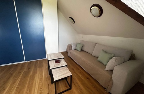 This newly renovated apartment features a living room with a trundle bed, a fully equipped kitchen (microwave, filter coffee maker, capsule coffee maker, kettle, dishwasher, washing machine), a bedroom with a 140x190 cm bed, a very large closet and a ceiling fan, a bathroom and toilet.