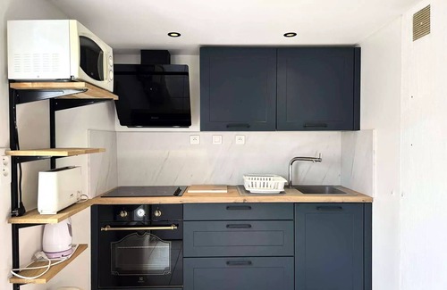 Accommodation: This holiday home includes a kitchenette with induction plate and microwave, fridge/freezer, a living room with TV and sofa bed, a bedroom with a double bed, a mezzanine (maximum height 1m40 with for access a miller ladder) with a single bed, a bathroom, a toilet.The Plus of this sea charter: Heated swimming pool open from mid-June to mid-September and secured and tennis, boulodrome, playground, paved patio with garden furniture and barbecue, private parking. Household end of stay included. Benefits included: