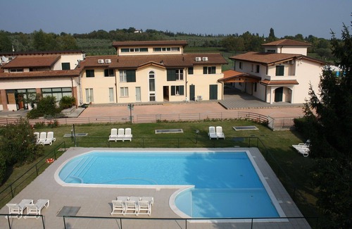 An old farmhouse, with a turret dating back to the 1400s annexed, welcomes those who wish to enjoy a holiday of tranquility in holiday apartments on Lake Garda. Around the main property there are thirteen hectares of meadows and olive groves, which create a natural atmosphere of uncontaminated beauty. Not only that, there are also a nice pond, a 9-hole golf course and a beautiful swimming pool, which embellish this scenery of great charm. Il Colombaro residence offers holiday apartments on Lake Garda, a few km from the lake shores, recently built and renovated and equipped with many amenities: TV-Sat, microwave, dishwasher and deck chairs. Those who stay there can also have easy access to the infrastructures and free use of the services offered within Villenpark Sanghen of Manerba del Garda. You can access the three swimming pools, play in the tennis court, take your kids to the mini club during the summer season, and relax in the unfurnished public beach adjacent to the Villenpark Sanghen property. Available to all, whether you are staying in the holiday apartments on Lake Garda or for guests outside the residence, there is the restaurant Il Colombaro, which offers theme nights and dishes that enhance the local food production. The estate enjoys, among other things, an excellent location for those who want to devote themselves to shopping, different, in fact, the easily accessible commercial establishments, and for those who want to visit the major surrounding tourist resorts.