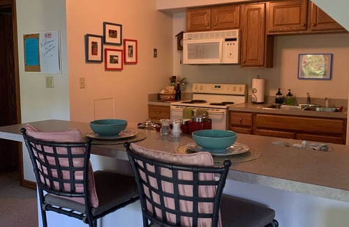 We have a nicely renovated two bedroom apartment on a small farm with lovely gardens, donkey, cows, horses and chickens. Cozy separate guesthouse/apartment with parking, living room, eat-in kitchen, full bath with shower, closet space, and bedroom one with queen size bed, second bedroom with a twin bed. There is a full-size pull-out couch in the living room and we include all your soaps, shampoo, towels and linens. We offer coffee, tea and an assortment of breakfast options. If it's summer, feel free to pick a few veggies for your dinner from our large gardens! Ask Molly to see the farm animals and let us know if we can recommend anything!