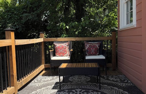 Escape to a historic 1870 4-bedroom house in the heart of Berkeley Springs. This delightful property boasts 2 queen beds, 1 full bed, and 1 trundle twin bed, perfect for wedding parties, reunions, families, or groups of friends. Two full baths include restored 1920s clawfoot tubs; 1/2 bath on the main floor. Enjoy the private backyard with a gazebo, deck and English gardens. Each room of the house is filled with unique art from around the world. The formal dining room seats eight and includes a hutch full of lovely china. The adorable kitchen is fully equipped. The Butler's Pantry includes mixers and bar amenities. Two adult bicycles are available to you. All that the Town of Bath has to offer is just steps away. We've lovingly restored this beautiful home, added central air and ceiling fans to supplement the radiant heat throughout. WiFi, hair dryers, and other special amenities will make for an unforgettable stay. We hope you enjoy what our place and Berkeley Springs has to offer.