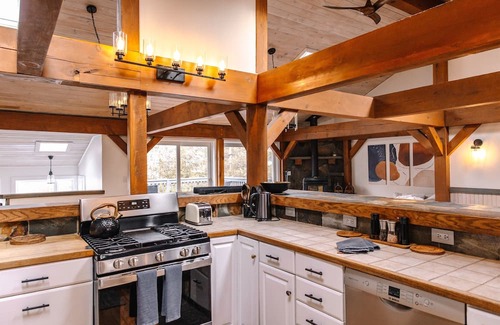 Our professionally designed kitchen is fully stocked with everything you need to prepare meals for large groups. Gather around the dining table or take your meal outside to the large deck, where you can enjoy the fresh air and peaceful surroundings. For entertainment, the villa offers a home theater setup, high-speed internet, and Bluetooth speakers in every gathering space.